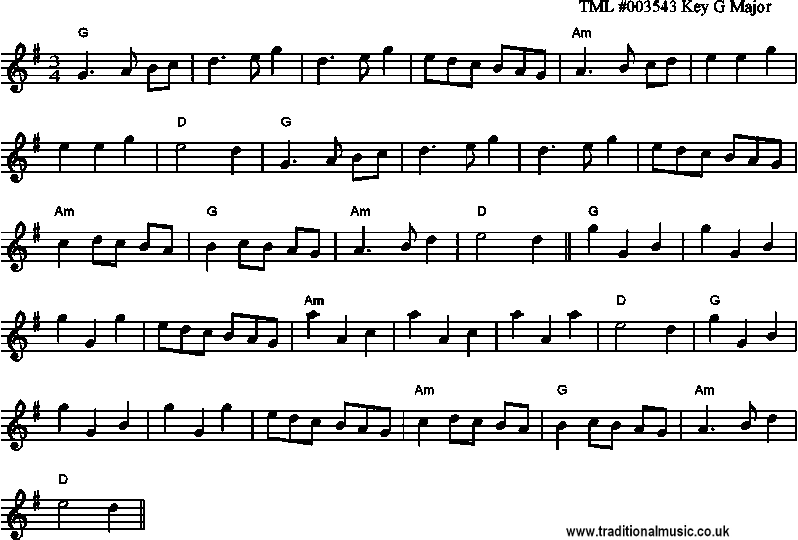 | This royalty free score was generated by the Traditional Music Library On Line Tunebook (Shareware Version). As-is copies of this score may be freely distributed. Further info from WWW.TRADITIONALMUSIC.CO.UK |